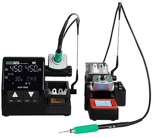 SUGON T60 forrasztóállomás + TJ8 hosszabbítás A SUGON T60 TJ8 hosszabbítóval egy professzionális forrasztóállomás, amely a sokoldalúságot lenyűgöző teljesítménnyel ötvözi. Az innovatív két szerszámos működtetési funkcióval és a különböző tartókkal és fűtőelemekkel való kompatibilitással páratlan rugalmasságot kínál. A 180 W-os teljesítmény, az állítható fogantyú és a fűtőelemek könnyű cseréje biztosítja a felhasználó kényelmét. Az intelligens vezérlés lehetővé teszi a hőmérséklet pontos beállítását, a további funkciók pedig javítják a kényelmet és a biztonságot a munka során. Ideális a szakemberek és az igényes felhasználók számára. A sokoldalúság, amit megérdemel A SUGON T60 forrasztóállomás egy professzionális felhasználók számára tervezett, fejlett készülék. Az innovatív TJ8 bővítménynek köszönhetően a T60 elnyeri az egy-kettő üzemmódban való munkavégzés képességét, ami azt jelenti, hogy egy készülék egyszerre két különböző szerszámot működtethet. Egy ilyen megoldás növeli a hatékonyságot, és lehetővé teszi a gyors váltást a különböző típusú tokmányok között anélkül, hogy a rendszert módosítani kellene. Kompatibilitás a különböző tokmányokkal A SUGON T60 kompatibilis mind a hagyományos tokmányokkal, mind a huzalvezérlésű T115, T210 és T245 modellekkel. Ez lehetővé teszi a felhasználó számára, hogy egy adott feladathoz a megfelelő szerszámot válassza ki. Ráadásul a T245-ös tartó teljes mértékben kompatibilis a C470-es sorozatú fűtőkészülékekkel, így ideális nagyméretű kötések forrasztásához és nagy mennyiségű ónnal való munkához. Ez a sokoldalúság mind a kényes elektronikai, mind az igényesebb alkalmazásoknál beválik. Állítható fogantyú és egyszerű fűtőelemcsere A fogantyú pozíciójának beállítása rendkívül egyszerű - szöge 45 fokos tartományban állítható, lehetővé téve az ergonomikus alkalmazkodást a felhasználó munkastílusához. Ezenkívül a fűtőtest cseréje pillanatok alatt és további szerszámok nélkül elvégezhető. A dedikált szilikon fűtőbetét rendkívül kényelmessé teszi a tárolást és a hozzáférést. Hatékonyság és precizitás 180 W-os teljesítménnyel A SUGON T60 állomás nagy teljesítményű, 180 W-os réz transzformátorral van felszerelve, amely gyors felmelegedést és hőmérséklet-stabilitást garantál még intenzív munka közben is. Ez lehetővé teszi a precíz elektronikai alkatrészek forrasztását, miközben a folyamatot teljes mértékben ellenőrizni tudja. Fejlett hőmérséklet-beállítások A SUGON T60 négy készenléti hőmérsékleti üzemmódot kínál (0°C, 150°C, 180°C, 200°C), így a felhasználó a fogantyú felvétele után azonnal elkezdheti a munkát. Ezenkívül három programozható hőmérséklet-beállítás áll a felhasználó rendelkezésére, amelyeket egy rövid gombnyomással betölthet, vagy hosszabb nyomva tartással elmenthet. Ez a funkció nagymértékben felgyorsítja a forrasztási folyamatot, és lehetővé teszi a felhasználó számára, hogy a paramétereket gyorsan az aktuális igényekhez igazítsa. Intelligens vezérlés és biztonság A SUGON T60 forrasztóállomás intelligens szoftveres vezérlést kínál, amely olyan funkciókat tartalmaz, mint az azonnali alvás, a hőmérséklet-kompenzáció, a Celsius és Fahrenheit közötti egység-átváltás és a kulcszár funkció. A felhasználó be- és kikapcsolhatja a csipogót is, valamint aktiválhatja vagy deaktiválhatja a két eszközzel való egyidejű munkavégzés funkcióját. Ez a forrasztási folyamat teljes ellenőrzése egyetlen kompakt eszközben. Professzionális eszköz az igényes felhasználók számára A SUGON T60 TJ8 hosszabbítóval kiváló választás azok számára, akik sokoldalú, nagy teljesítményű és precíz forrasztóállomást keresnek. A különböző tartókkal való kompatibilitásával, az állítható munkaszöggel és az intelligens vezérlési funkciókkal a készülék a profik és a haladó hobbisták igényeit egyaránt kielégíti. Tegye még hatékonyabbá és pontosabbá forrasztását! Tartalmazza a